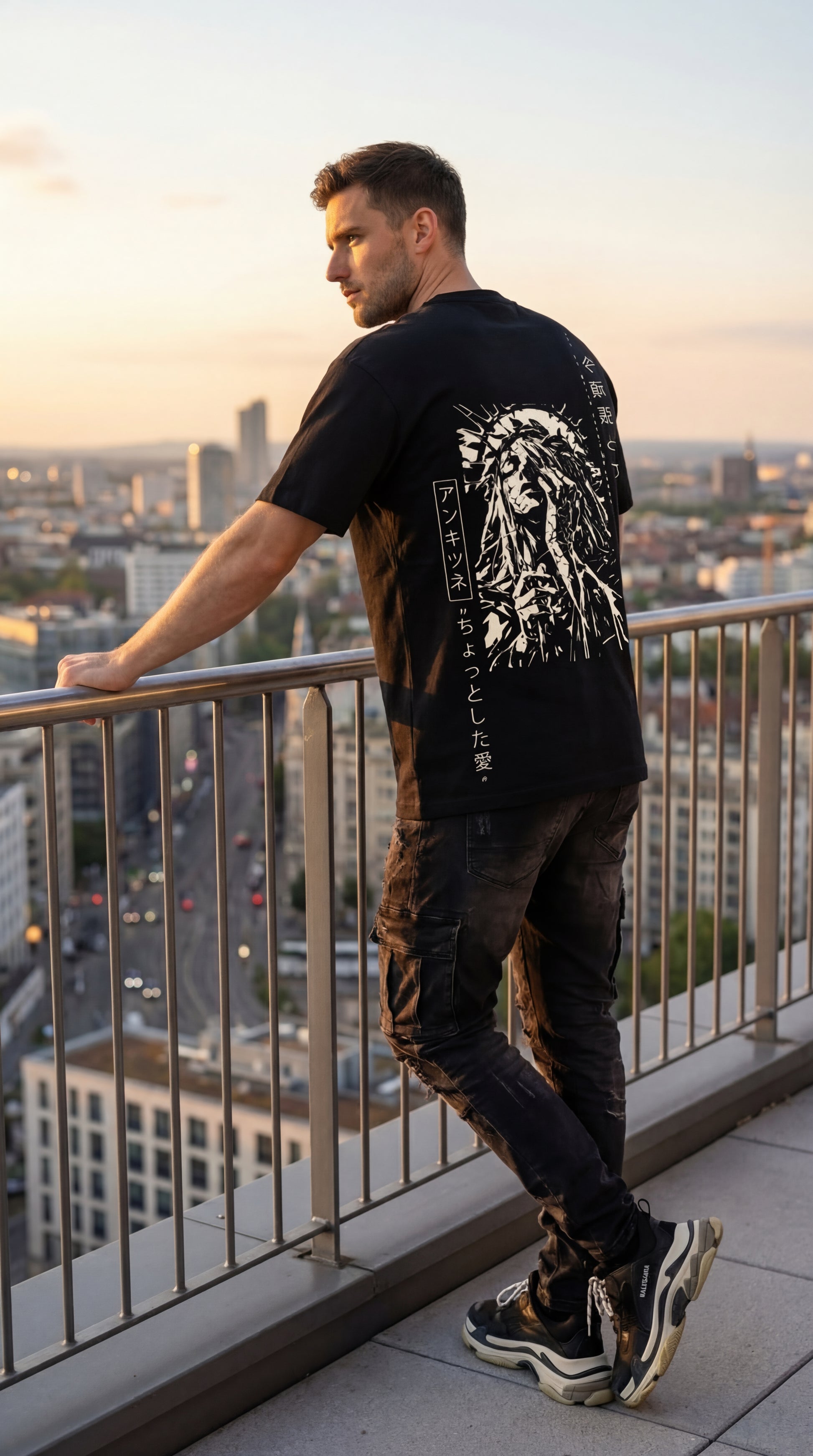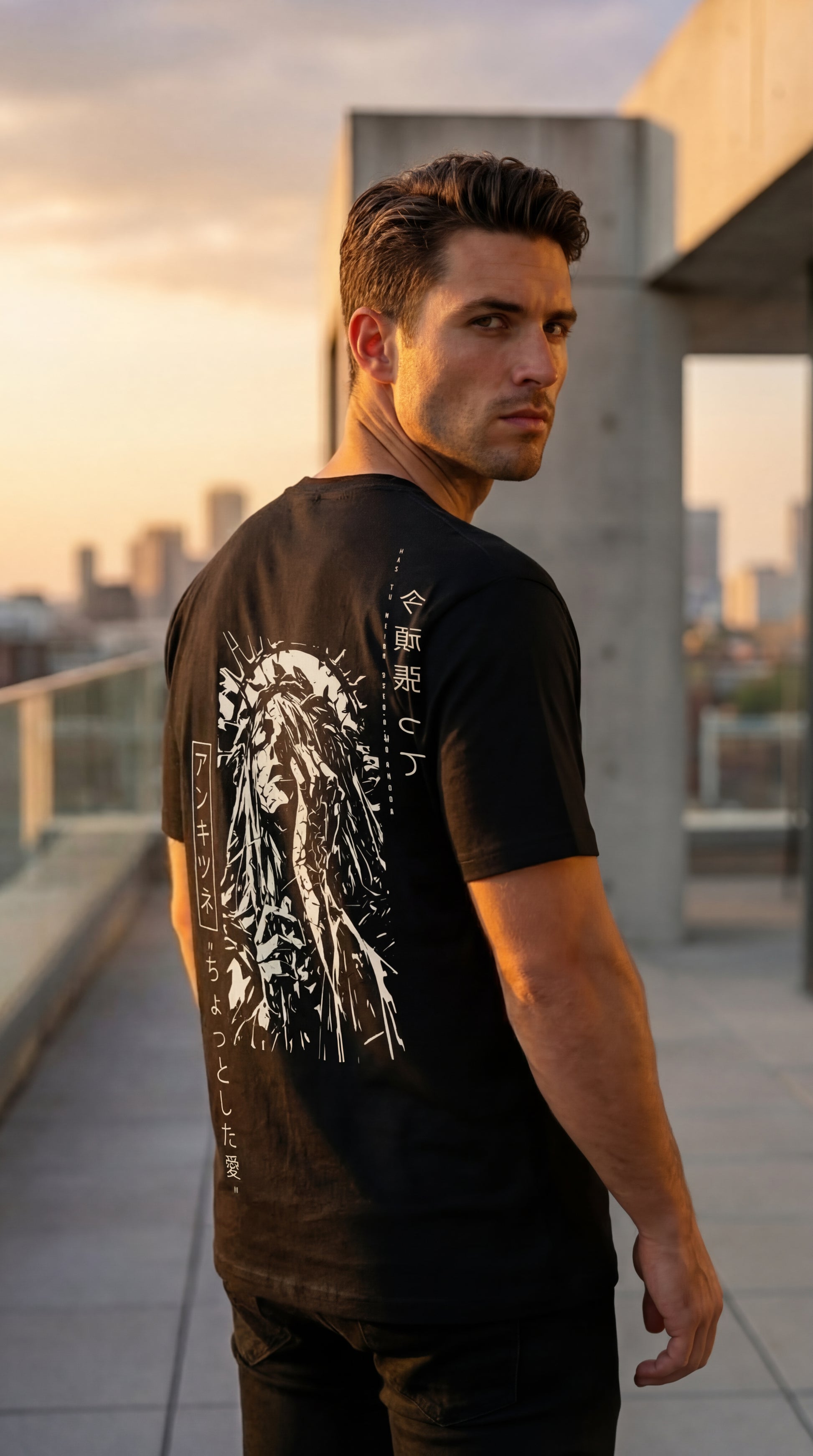 Printed in off-white on deep black cotton, this piece is raw, bold, and unapologetic.